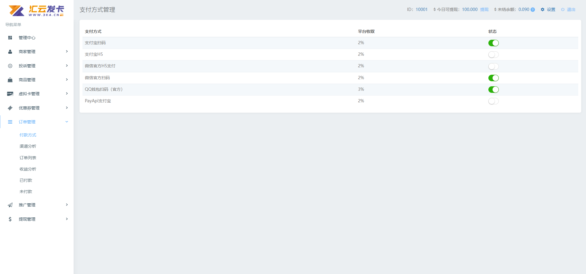商户中心页面: