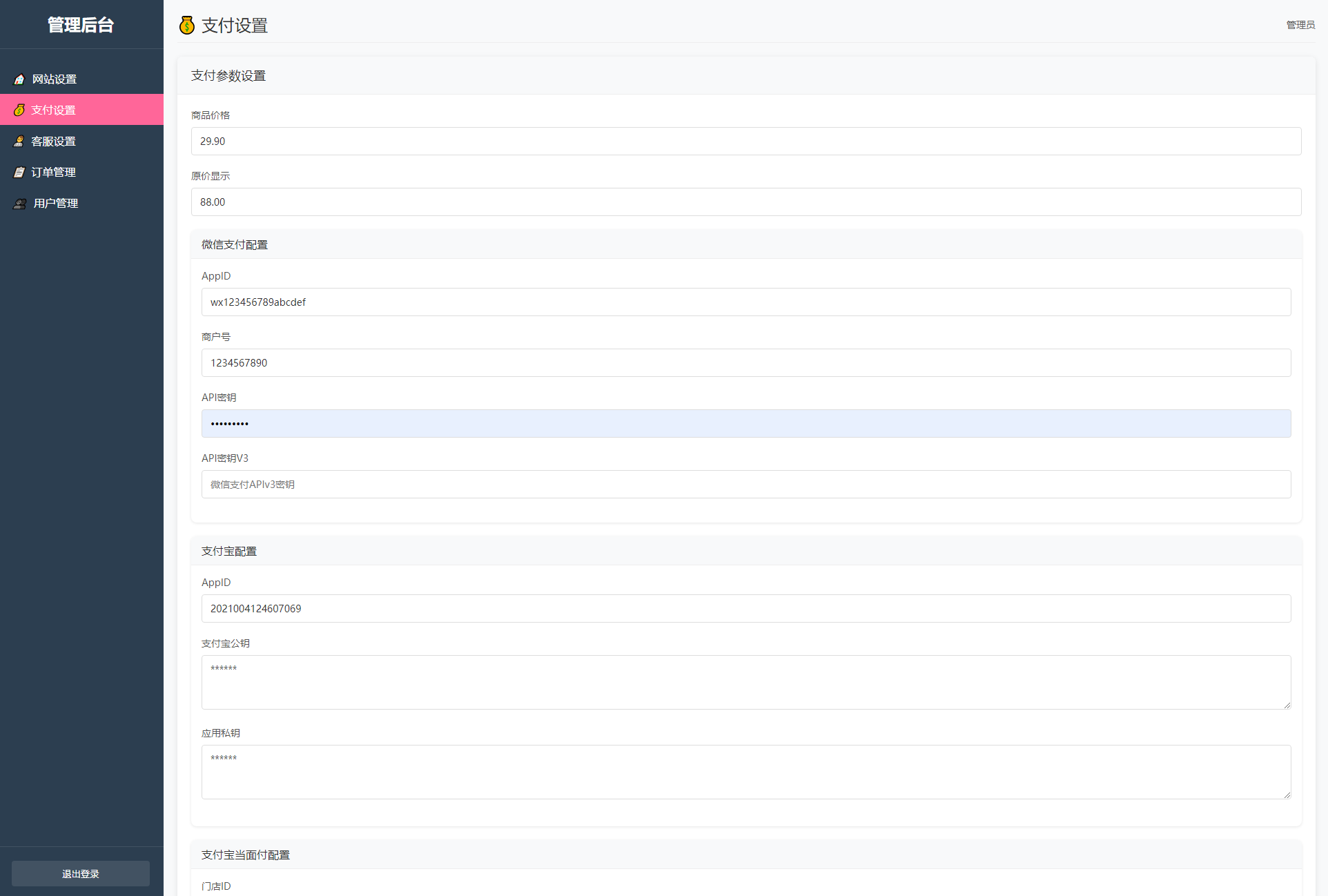 后台登录地址:/admin 账号admin 密码admin123